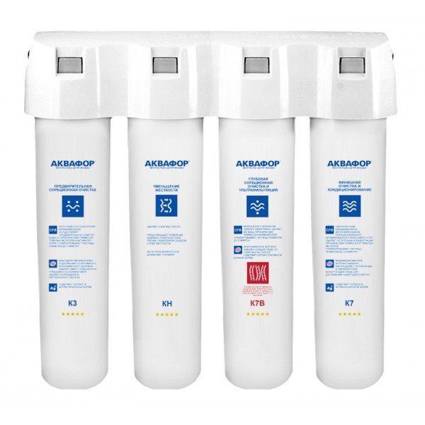 Обратноосмотические фильтры используются для абсолютной защиты от накипи, т.к. полностью устраняют соли жесткости из воды.нетЧисло ступеней очисткиКартриджи последовательно очищают воду и от видимых примесей, и от растворенных. Первый картридж задерживает более крупные частицы, а каждый последующий - более мелкие. Чем больше ступеней - тем лучше фильтр очистит воду: поймает более мелкие видимые частицы ржавчины, песка и ила, успеет захватить из воды максимум растворенных примесей - хлора, нитратов, тяжелых металлов и других.4МинерализацияПроисходит после финишной очистки воды. Необходима прежде всего в фильтре обратного осмоса, поскольку такой фильтр полностью устраняет из воды все примеси, в том числе минералы. Минералы добавляются в оптимальной концентрации - для пользы и привычного вкуса воды.нетПостфильтрацияФинальный этап очистки воды: картриджи постфильтрации удаляют самые мелкие механические частицы и кондиционируют воду, придавая ей более приятный вкус.нетНакопительная емкостьОбычно нужна в фильтрах обратного осмоса. Глубокая фильтрация требует времени. Чтобы Вам не приходилось ждать, пока вода наберется в чайник или кастрюлю, почти во всех моделях используется накопительный бак для чистой воды или другая емкость. В стандартном фильтре обратного осмоса под мойку воды в баке достаточно для семьи из 5-6 человек.нетФильтрующий модуль в комплектедаОтдельный краннетДавление в водопроводе не более, атмМаксимальное давление воды на входе в систему, при котором возможна стабильная работа фильтра.6,5Ширина, смОбратите внимание на габариты фильтра, и измерьте, сколько свободного пространства в предполагаемом месте установки.26,0Глубина, смОбратите внимание на габариты фильтра, и измерьте, сколько свободного пространства в предполагаемом месте установки.9,0Защита корпуса от гидроударовдаИсходная водаЖесткая вода – вода с избытком минеральных солей. От нее появляется накипь в чайнике, известковый налет на сантехнике и разводы на посуде. Мягкая вода – та, в которой мало минеральных солей. Нет накипи в чайнике и разводов на посуде. Фильтры для мутной воды и фильтры от ржавчины, как правило, имеют несколько стадий очистки и дополнительный полипропиленовый картридж. Он задерживает механические частицы ила, песка и ржавчины и защищает картриджи более глубокой очистки.жёсткаяУстраняет мутностьМутность водопроводной воды может говорить о том, что в ней много мелких механических частиц. Важно, чтобы в фильтре был установлен дополнительные картридж механической предфильтрации (полипропиленовый) - он продлит жизнь остальным картриджам более тонкой очистки.даУстраняет ржавчину, бурый осадокЛюбой фильтр под мойку удалит из воды крупные и мелкие частицы ржавчины. Некоторые фильтры имеют повышенный ресурс по железу: они дольше служат в такой воде, поскольку лучше подходят для удаления из воды железа и механических частиц ржавчины.нетЗащита от бактерийВсе проточные фильтры в той или иной степени защищают от бактерий. Например, добавление серебра препятствует их размножению. Это стандартная степень защиты. Если в семье есть дети, пожилые люди или аллергики, воду рекомендуется обеззараживать, то есть полностью удалять микроорганизмы. Повышенную защиту от бактерий дают фильтры с половолоконной мембраной. Это пучок тр