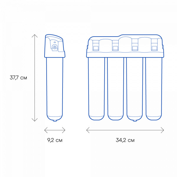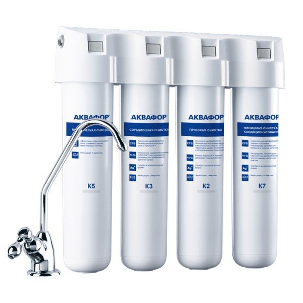 Обратноосмотические фильтры используются для абсолютной защиты от накипи, т.к. полностью устраняют соли жесткости из воды.нетЧисло ступеней очисткиКартриджи последовательно очищают воду и от видимых примесей, и от растворенных. Первый картридж задерживает более крупные частицы, а каждый последующий - более мелкие. Чем больше ступеней - тем лучше фильтр очистит воду: поймает более мелкие видимые частицы ржавчины, песка и ила, успеет захватить из воды максимум растворенных примесей - хлора, нитратов, тяжелых металлов и других.4МинерализацияПроисходит после финишной очистки воды. Необходима прежде всего в фильтре обратного осмоса, поскольку такой фильтр полностью устраняет из воды все примеси, в том числе минералы. Минералы добавляются в оптимальной концентрации - для пользы и привычного вкуса воды.нетПостфильтрацияФинальный этап очистки воды: картриджи постфильтрации удаляют самые мелкие механические частицы и кондиционируют воду, придавая ей более приятный вкус.нетНакопительная емкостьОбычно нужна в фильтрах обратного осмоса. Глубокая фильтрация требует времени. Чтобы Вам не приходилось ждать, пока вода наберется в чайник или кастрюлю, почти во всех моделях используется накопительный бак для чистой воды или другая емкость. В стандартном фильтре обратного осмоса под мойку воды в баке достаточно для семьи из 5-6 человек.нетФильтрующий модуль в комплектедаОтдельный крандаДавление в водопроводе не более, атмМаксимальное давление воды на входе в систему, при котором возможна стабильная работа фильтра.6,5Ширина, смОбратите внимание на габариты фильтра, и измерьте, сколько свободного пространства в предполагаемом месте установки.37,7Глубина, смОбратите внимание на габариты фильтра, и измерьте, сколько свободного пространства в предполагаемом месте установки.9,2Защита корпуса от гидроударовдаИсходная водаЖесткая вода – вода с избытком минеральных солей. От нее появляется накипь в чайнике, известковый налет на сантехнике и разводы на посуде. Мягкая вода – та, в которой мало минеральных солей. Нет накипи в чайнике и разводов на посуде. Фильтры для мутной воды и фильтры от ржавчины, как правило, имеют несколько стадий очистки и дополнительный полипропиленовый картридж. Он задерживает механические частицы ила, песка и ржавчины и защищает картриджи более глубокой очистки.мягкаяУстраняет мутностьМутность водопроводной воды может говорить о том, что в ней много мелких механических частиц. Важно, чтобы в фильтре был установлен дополнительные картридж механической предфильтрации (полипропиленовый) - он продлит жизнь остальным картриджам более тонкой очистки.даУстраняет ржавчину, бурый осадокЛюбой фильтр под мойку удалит из воды крупные и мелкие частицы ржавчины. Некоторые фильтры имеют повышенный ресурс по железу: они дольше служат в такой воде, поскольку лучше подходят для удаления из воды железа и механических частиц ржавчины.нетЗащита от бактерийВсе проточные фильтры в той или иной степени защищают от бактерий. Например, добавление серебра препятствует их размножению. Это стандартная степень защиты. Если в семье есть дети, пожилые люди или аллергики, воду рекомендуется обеззараживать, то есть полностью удалять микроорганизмы. Повышенную защиту от бактерий дают фильтры с половолоконной мембраной. Это пучок труб