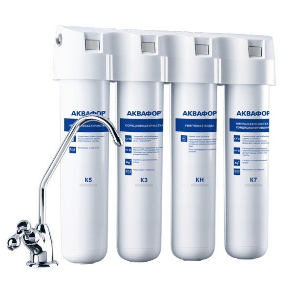 Обратноосмотические фильтры используются для абсолютной защиты от накипи, т.к. полностью устраняют соли жесткости из воды.нетЧисло ступеней очисткиКартриджи последовательно очищают воду и от видимых примесей, и от растворенных. Первый картридж задерживает более крупные частицы, а каждый последующий - более мелкие. Чем больше ступеней - тем лучше фильтр очистит воду: поймает более мелкие видимые частицы ржавчины, песка и ила, успеет захватить из воды максимум растворенных примесей - хлора, нитратов, тяжелых металлов и других.4МинерализацияПроисходит после финишной очистки воды. Необходима прежде всего в фильтре обратного осмоса, поскольку такой фильтр полностью устраняет из воды все примеси, в том числе минералы. Минералы добавляются в оптимальной концентрации - для пользы и привычного вкуса воды.нетПостфильтрацияФинальный этап очистки воды: картриджи постфильтрации удаляют самые мелкие механические частицы и кондиционируют воду, придавая ей более приятный вкус.нетНакопительная емкостьОбычно нужна в фильтрах обратного осмоса. Глубокая фильтрация требует времени. Чтобы Вам не приходилось ждать, пока вода наберется в чайник или кастрюлю, почти во всех моделях используется накопительный бак для чистой воды или другая емкость. В стандартном фильтре обратного осмоса под мойку воды в баке достаточно для семьи из 5-6 человек.нетФильтрующий модуль в комплектедаОтдельный крандаДавление в водопроводе не более, атмМаксимальное давление воды на входе в систему, при котором возможна стабильная работа фильтра.6,5Ширина, смОбратите внимание на габариты фильтра, и измерьте, сколько свободного пространства в предполагаемом месте установки.37,7Глубина, смОбратите внимание на габариты фильтра, и измерьте, сколько свободного пространства в предполагаемом месте установки.9,2Защита корпуса от гидроударовдаИсходная водаЖесткая вода – вода с избытком минеральных солей. От нее появляется накипь в чайнике, известковый налет на сантехнике и разводы на посуде. Мягкая вода – та, в которой мало минеральных солей. Нет накипи в чайнике и разводов на посуде. Фильтры для мутной воды и фильтры от ржавчины, как правило, имеют несколько стадий очистки и дополнительный полипропиленовый картридж. Он задерживает механические частицы ила, песка и ржавчины и защищает картриджи более глубокой очистки.жёсткаяУстраняет мутностьМутность водопроводной воды может говорить о том, что в ней много мелких механических частиц. Важно, чтобы в фильтре был установлен дополнительные картридж механической предфильтрации (полипропиленовый) - он продлит жизнь остальным картриджам более тонкой очистки.даУстраняет ржавчину, бурый осадокЛюбой фильтр под мойку удалит из воды крупные и мелкие частицы ржавчины. Некоторые фильтры имеют повышенный ресурс по железу: они дольше служат в такой воде, поскольку лучше подходят для удаления из воды железа и механических частиц ржавчины.нетЗащита от бактерийВсе проточные фильтры в той или иной степени защищают от бактерий. Например, добавление серебра препятствует их размножению. Это стандартная степень защиты. Если в семье есть дети, пожилые люди или аллергики, воду рекомендуется обеззараживать, то есть полностью удалять микроорганизмы. Повышенную защиту от бактерий дают фильтры с половолоконной мембраной. Это пучок тру