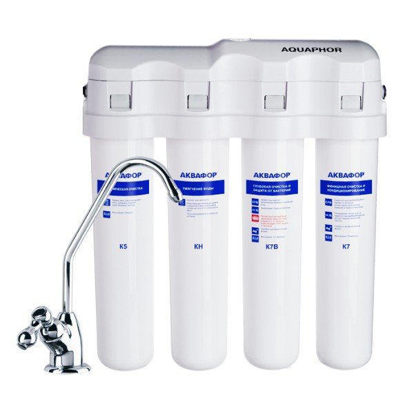Обратноосмотические фильтры используются для абсолютной защиты от накипи, т.к. полностью устраняют соли жесткости из воды.нетЧисло ступеней очисткиКартриджи последовательно очищают воду и от видимых примесей, и от растворенных. Первый картридж задерживает более крупные частицы, а каждый последующий - более мелкие. Чем больше ступеней - тем лучше фильтр очистит воду: поймает более мелкие видимые частицы ржавчины, песка и ила, успеет захватить из воды максимум растворенных примесей - хлора, нитратов, тяжелых металлов и других.5МинерализацияПроисходит после финишной очистки воды. Необходима прежде всего в фильтре обратного осмоса, поскольку такой фильтр полностью устраняет из воды все примеси, в том числе минералы. Минералы добавляются в оптимальной концентрации - для пользы и привычного вкуса воды.нетПостфильтрацияФинальный этап очистки воды: картриджи постфильтрации удаляют самые мелкие механические частицы и кондиционируют воду, придавая ей более приятный вкус.нетНакопительная емкостьОбычно нужна в фильтрах обратного осмоса. Глубокая фильтрация требует времени. Чтобы Вам не приходилось ждать, пока вода наберется в чайник или кастрюлю, почти во всех моделях используется накопительный бак для чистой воды или другая емкость. В стандартном фильтре обратного осмоса под мойку воды в баке достаточно для семьи из 5-6 человек.нетФильтрующий модуль в комплектедаОтдельный крандаДавление в водопроводе не более, атмМаксимальное давление воды на входе в систему, при котором возможна стабильная работа фильтра.6,5Ширина, смОбратите внимание на габариты фильтра, и измерьте, сколько свободного пространства в предполагаемом месте установки.37,7Глубина, смОбратите внимание на габариты фильтра, и измерьте, сколько свободного пространства в предполагаемом месте установки.9,2Защита корпуса от гидроударовдаИсходная водаЖесткая вода – вода с избытком минеральных солей. От нее появляется накипь в чайнике, известковый налет на сантехнике и разводы на посуде. Мягкая вода – та, в которой мало минеральных солей. Нет накипи в чайнике и разводов на посуде. Фильтры для мутной воды и фильтры от ржавчины, как правило, имеют несколько стадий очистки и дополнительный полипропиленовый картридж. Он задерживает механические частицы ила, песка и ржавчины и защищает картриджи более глубокой очистки.жёсткаяУстраняет мутностьМутность водопроводной воды может говорить о том, что в ней много мелких механических частиц. Важно, чтобы в фильтре был установлен дополнительные картридж механической предфильтрации (полипропиленовый) - он продлит жизнь остальным картриджам более тонкой очистки.даУстраняет ржавчину, бурый осадокЛюбой фильтр под мойку удалит из воды крупные и мелкие частицы ржавчины. Некоторые фильтры имеют повышенный ресурс по железу: они дольше служат в такой воде, поскольку лучше подходят для удаления из воды железа и механических частиц ржавчины.даЗащита от бактерийВсе проточные фильтры в той или иной степени защищают от бактерий. Например, добавление серебра препятствует их размножению. Это стандартная степень защиты. Если в семье есть дети, пожилые люди или аллергики, воду рекомендуется обеззараживать, то есть полностью удалять микроорганизмы. Повышенную защиту от бактерий дают фильтры с половолоконной мембраной. Это пучок труб