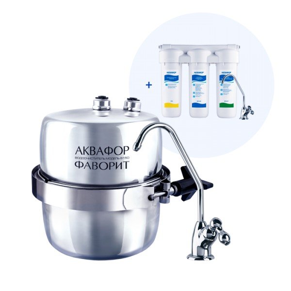 Обратноосмотические фильтры используются для абсолютной защиты от накипи, т.к. полностью устраняют соли жесткости из воды.нетЧисло ступеней очисткиКартриджи последовательно очищают воду и от видимых примесей, и от растворенных. Первый картридж задерживает более крупные частицы, а каждый последующий - более мелкие. Чем больше ступеней - тем лучше фильтр очистит воду: поймает более мелкие видимые частицы ржавчины, песка и ила, успеет захватить из воды максимум растворенных примесей - хлора, нитратов, тяжелых металлов и других.2Механическая фильтрацияЗадерживает ржавчину, ил, песок, как “сито”. Если в фильтре несколько картриджей - первый отсекает самые крупные частицы, а каждый последующий - более мелкие. Существуют картриджи, в которых есть только механическая очистка (полипропиленовые, не “впитывают” растворенные примеси). Они обычно стоят первыми по ходу воды, чтобы продлить жизнь угольным (сорбционным) картриджам, которые ещё и впитывают вредные примеси, как губка.даИонный обменНужен, чтобы умягчать воду, а также задерживать тяжелые металлы. За это отвечают ионно-обменная смола и Аквален (волокна, которые есть во всех фильтрах Аквафор, чтобы устранять тяжелые металлы даже из жесткой воды). Чем больше ионно-обменной смолы - тем лучше фильтр справится с жесткостью. В небольшом количестве она есть во всех фильтрах под мойку. Если же в фильтре есть отдельный картридж, заполненный такой смолой (например, KH), - фильтр помогает умягчать воду. Для слишком жесткой воды (более 5 мкв) лучше выбрать фильтр обратного осмоса.даСорбцияСпособность “впитывать” из воды растворенные, “невидимые” вредные примеси, по принципу губки. Активированный уголь - основной сорбционный материал, который используется в картриджах фильтров для питьевой воды. Например, именно так из воды удаляется хлор.даУмягчениеУдаление из воды солей жесткости (солей кальция и магния, из-за которых образуется накипь в чайнике, белые пятна на посуде, известковый налет). Фильтры обратного осмоса абсолютно умягчают воду с любой концентрацией солей (то есть удаляют соли жесткости полностью). Проточные фильтры со специальными картриджами рекомендуются только для умягчения воды средней жесткости (той, в которой средняя концентрация солей кальция и магния - до 5 млэкв/литр).нетМинерализацияПроисходит после финишной очистки воды. Необходима прежде всего в фильтре обратного осмоса, поскольку такой фильтр полностью устраняет из воды все примеси, в том числе минералы. Минералы добавляются в оптимальной концентрации - для пользы и привычного вкуса воды.нетПостфильтрацияФинальный этап очистки воды: картриджи постфильтрации удаляют самые мелкие механические частицы и кондиционируют воду, придавая ей более приятный вкус.нетПрименениедля холодной водыНакопительная емкостьОбычно нужна в фильтрах обратного осмоса. Глубокая фильтрация требует времени. Чтобы Вам не приходилось ждать, пока вода наберется в чайник или кастрюлю, почти во всех моделях используется накопительный бак для чистой воды или другая емкость. В стандартном фильтре обратного осмоса под мойку воды в баке достаточно для семьи из 5-6 человек.нетФильтрует частицы крупнее, мкмЧем меньше цифра, тем более мелкие частицы способен задержать фильтр. Например, любой фильтр под мойку справится с ржавчиной, илом и 