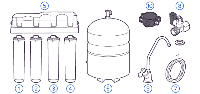 В фильтрах обратного осмоса установлена мембрана, которая не пропускает ничего, кроме воды (вода проходит через неё под давлением). Такой фильтр делает безопасной водопроводную воду любого качества, удаляя все вредные примеси: бактерии, вирусы, хлор, тяжелые металлы, нитраты, фармацевтику. Обратноосмотические фильтры используются для абсолютной защиты от накипи, т.к. полностью устраняют соли жесткости из воды. |