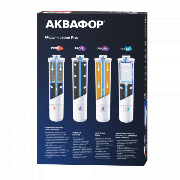 Модуль Pro B включает и карбонблок и ультрафильтрационную половолоконную мембрану для абсолютной антибактериальной защиты.
