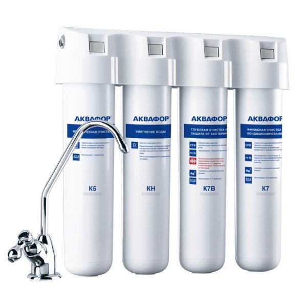 Обратноосмотические фильтры используются для абсолютной защиты от накипи, т.к. полностью устраняют соли жесткости из воды.нетЧисло ступеней очисткиКартриджи последовательно очищают воду и от видимых примесей, и от растворенных. Первый картридж задерживает более крупные частицы, а каждый последующий - более мелкие. Чем больше ступеней - тем лучше фильтр очистит воду: поймает более мелкие видимые частицы ржавчины, песка и ила, успеет захватить из воды максимум растворенных примесей - хлора, нитратов, тяжелых металлов и других.5МинерализацияПроисходит после финишной очистки воды. Необходима прежде всего в фильтре обратного осмоса, поскольку такой фильтр полностью устраняет из воды все примеси, в том числе минералы. Минералы добавляются в оптимальной концентрации - для пользы и привычного вкуса воды.нетПостфильтрацияФинальный этап очистки воды: картриджи постфильтрации удаляют самые мелкие механические частицы и кондиционируют воду, придавая ей более приятный вкус.нетНакопительная емкостьОбычно нужна в фильтрах обратного осмоса. Глубокая фильтрация требует времени. Чтобы Вам не приходилось ждать, пока вода наберется в чайник или кастрюлю, почти во всех моделях используется накопительный бак для чистой воды или другая емкость. В стандартном фильтре обратного осмоса под мойку воды в баке достаточно для семьи из 5-6 человек.нетФильтрующий модуль в комплектедаОтдельный крандаДавление в водопроводе не более, атмМаксимальное давление воды на входе в систему, при котором возможна стабильная работа фильтра.6,5Ширина, смОбратите внимание на габариты фильтра, и измерьте, сколько свободного пространства в предполагаемом месте установки.37,7Глубина, смОбратите внимание на габариты фильтра, и измерьте, сколько свободного пространства в предполагаемом месте установки.9,2Защита корпуса от гидроударовдаИсходная водаЖесткая вода – вода с избытком минеральных солей. От нее появляется накипь в чайнике, известковый налет на сантехнике и разводы на посуде. Мягкая вода – та, в которой мало минеральных солей. Нет накипи в чайнике и разводов на посуде. Фильтры для мутной воды и фильтры от ржавчины, как правило, имеют несколько стадий очистки и дополнительный полипропиленовый картридж. Он задерживает механические частицы ила, песка и ржавчины и защищает картриджи более глубокой очистки.жёсткаяУстраняет мутностьМутность водопроводной воды может говорить о том, что в ней много мелких механических частиц. Важно, чтобы в фильтре был установлен дополнительные картридж механической предфильтрации (полипропиленовый) - он продлит жизнь остальным картриджам более тонкой очистки.даУстраняет ржавчину, бурый осадокЛюбой фильтр под мойку удалит из воды крупные и мелкие частицы ржавчины. Некоторые фильтры имеют повышенный ресурс по железу: они дольше служат в такой воде, поскольку лучше подходят для удаления из воды железа и механических частиц ржавчины.даЗащита от бактерийВсе проточные фильтры в той или иной степени защищают от бактерий. Например, добавление серебра препятствует их размножению. Это стандартная степень защиты. Если в семье есть дети, пожилые люди или аллергики, воду рекомендуется обеззараживать, то есть полностью удалять микроорганизмы. Повышенную защиту от бактерий дают фильтры с половолоконной мембраной. Это пучок труб