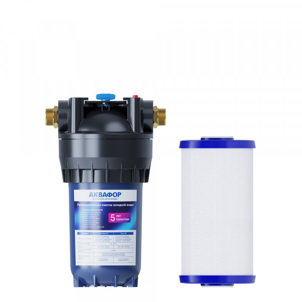 Не забывайте учитывать и срок службы фильтра: он указан в паспорте и определяет, когда модуль нужно заменить, даже если ресурс активной фильтрации в литрах еще есть.30000СорбцияСпособность “впитывать” из воды растворенные, “невидимые” вредные примеси, по принципу губки. Активированный уголь - основной сорбционный материал, который используется в картриджах фильтров для питьевой воды. Например, именно так из воды удаляется хлор.даСкорость фильтрации, л/минСкорость подачи отфильтрованной воды из крана чистой воды на мойке. Например, при скорости фильтрации 2,5 литра/минуту стакан 200 мл. наполнится меньше, чем за 10 секунд.10,0КомплектацияГотовый фильтр состоит из корпуса и картриджа для очистки воды. Если вы приобретаете только корпус, необходимо отдельно купить подходящий к нему картридж: это может быть картридж для механической очистки воды от ржавчины, картридж для глубокой очистки воды от хлора.готовый фильтрВодаКартриджи и корпуса фильтров рассчитаны на определенную температуру воды. Данные технические характеристики важно учитывать, поскольку от этого зависит качество очистки и срок службы фильтра.холоднаяМатериал корпусаПищевой пластик: Допущен к контакту с пищевыми продуктами. Нержавеющая сталь: Долговечный и безопасный корпус из нержавеющей пищевой стали.пищевой пластикОчисткаМеханическая очистка: Задерживает ржавчину, ил, песок, как “сито”. В корпусе предфильтра с механической очисткой установлен полипропиленовый модуль. Глубокая очистка: Подходит, чтобы купать детей в чистой воде. Делает прием душа и умывание более приятным. Фильтр глубокой очистки воды во всей квартире не только останавливает ржавчину, ил, песок, но и впитывает растворенные опасные примеси, как губка. Удаляет из воды хлор, хлорорганические вещества, пестициды и другие загрязнители.глубокаяДля холодной водыда